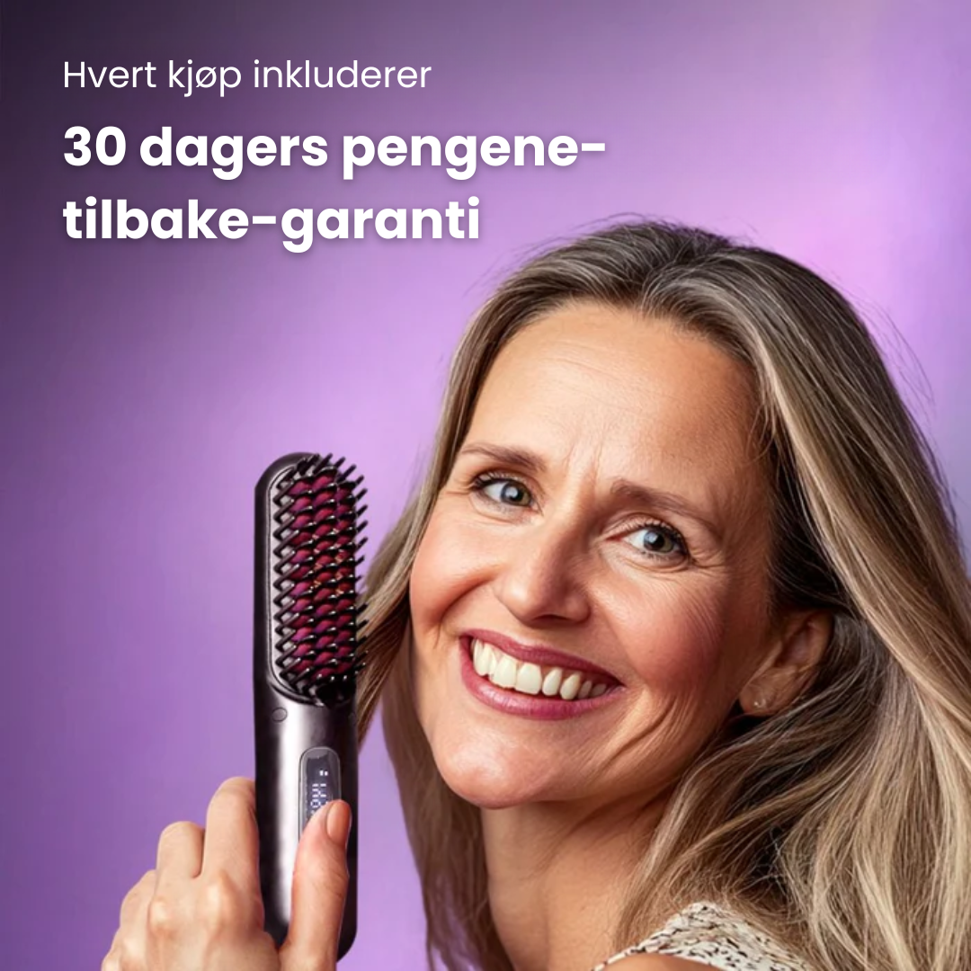 Opplev GoBrush med selvtillit! Nyt en 30-dagers prøveperiode og se forskjellen i håret ditt. Hvis du ikke er fornøyd, kan du enkelt returnere den og få full refusjon. Oppdag enkel styling og resultater i salongkvalitet i dag!